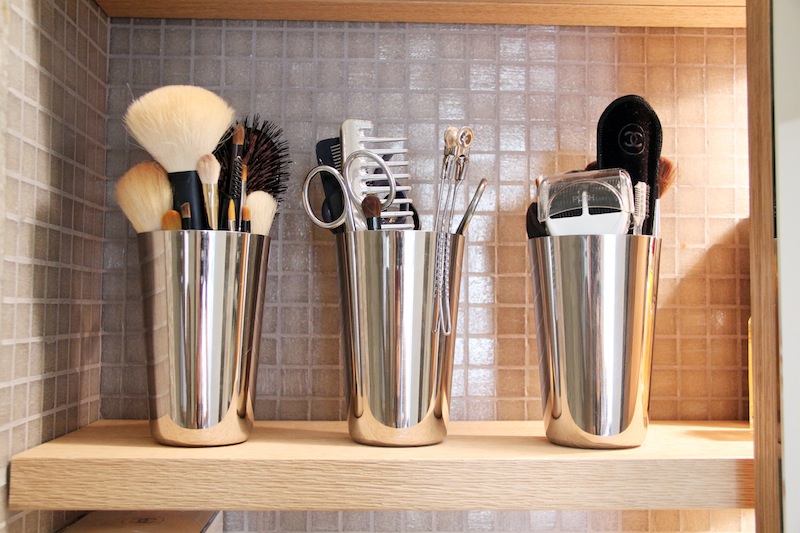 I have been doing the French fashion channel for maybe seven or eight years. My father is Russian, but my mother is half eastern European—Romanian—and half French. I grew up in Paris. I love beauty products, especially creams and nail polishes. I’m very good at trying things; I meet a lot of people, a lot of makeup artists, so I know what is good. I love trying anything. I recommend things to my friends. There are things I am testing, they are boxes, so I have things everywhere, and makeup everywhere. I’m crazy about hair, shampoo, I have some everywhere. But I like to be clean and organized.