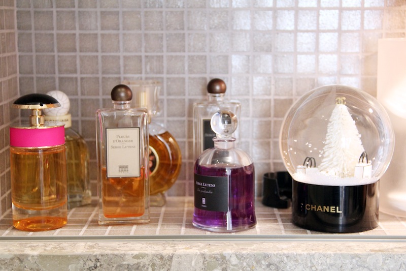 Usually I don’t like to wear perfume, but I like to put it on my husband. I love the Serge Lutens—I love the bottle, and the smells. For the first time, I wore the Prada Candy. It’s light which I like; I don’t smell it all day long.