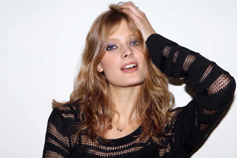 Constance Jablonski (Marilyn) wearing limited edition Pure Color Gelée Powder eye shadow in Cyber Lilac and Pure Color Intense Kajal eyeliner in Blackened Plum and Blackened Black, from the new Cyber Eyes collection. Photos and makeup by ITG.