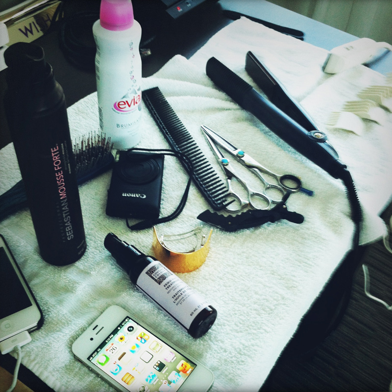 When not “banging Kate in the other room”, McMillan blew dry Williams’ hair using Sebastian Professional Mousse Forte, and finished it by sweeping on some Couture Colour Pequi Oil Treatment. Williams’ nails got the HIPPxRGB treatment…more on that in a moment………