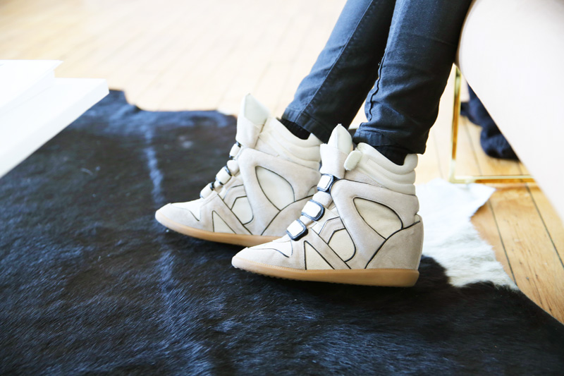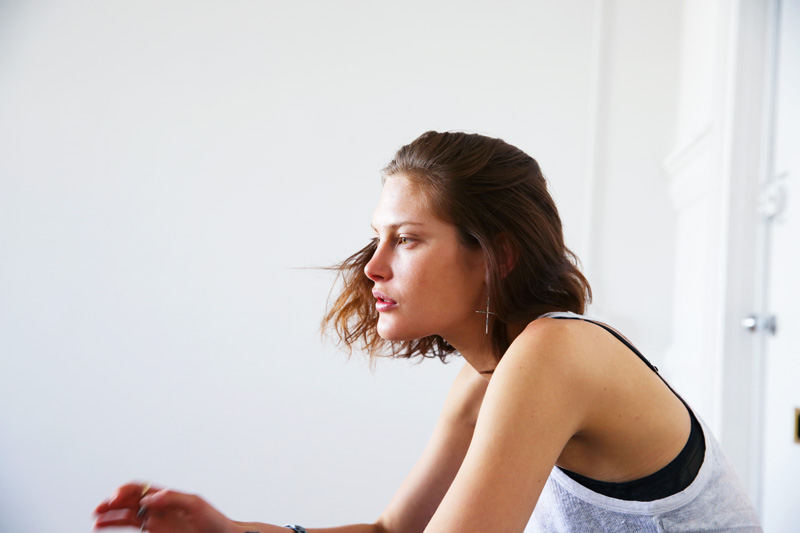 When it comes to style, the Aussie model is similarly nonchalant. Her two staples: a Rick Owens leather jacket “You can spill stuff on it, throw it on the ground, it just gets better'), and a new-ish pair of Isabel Marant wedge sneakers “Good for when you're walking around five hours a day...even if a bunch of girls are wearing them now—I don't care, I'd been wanting them for years'). She's also embraced a more health-conscious lifestyle. “Before, I didn’t really care so much. It was kind of just like, ugh, whatever, get on with it. But in the last year, I've started to take care of myself very well.” she said. “I go to the gym in my building, probably five or seven days a week, though my knees aren’t very happy with me because I’ve been running a lot.”