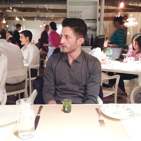 One last thing, a word to the wise: if you must go to a work lunch while juicing, I recommend you do it only with the ladies from Tory Burch. I challenge anyone to find a more understanding, more cleanse-compassionate group of people. This doesn't mean I still didn't feel like an asshole when my mini beaker of wheatgrass arrived as my entrée [photo 7], when everyone else had ordered delicious salads and a pizza. But they made me feel normal.