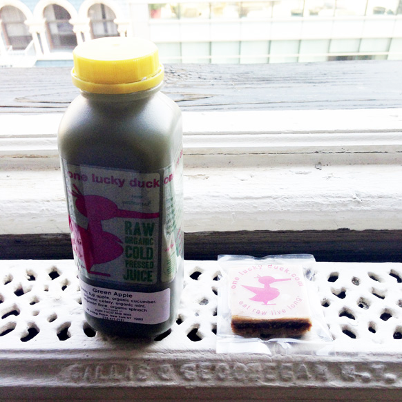 Anywho, day three begins with not the brightest of spirits on my part and a deep desire to drop-kick all the food and drinks that One Lucky Duck had prepared for me. I am still planning on doing a five-day cleanse at this point. I think, “If I’m going for it, I should do it all the way!” Fool. (Maybe some of you are a bit stronger than I am, but my recommendation would be: if you're not big on juices in your daily life, opt for a shorter cleanse for your first time. Your stomach, your brain, and probably your friends, family, and coworkers will thank you).