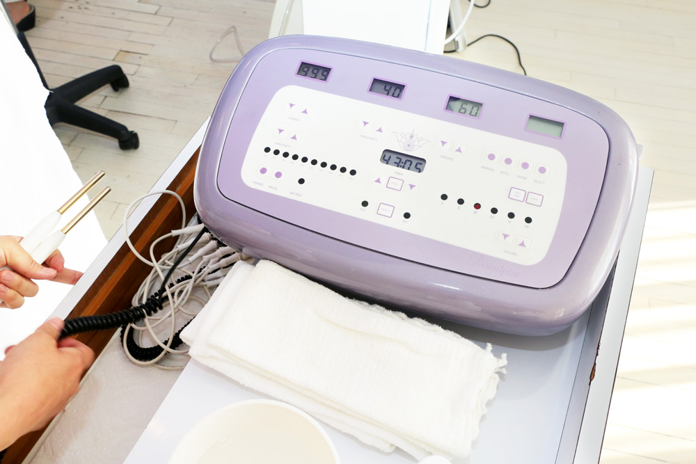 THE PROCESS This was my first experience with acupuncture, and I was assured it is generally more relaxing when the muscles in your torso aren’t also contracting every 20 to 30 seconds. At first I didn’t think much of anything was happening, because it just felt like a steady vibration on my stomach, and then I gestured with my left arm during a pulse and it snapped up to my shoulder, where it remained until the pulse released. “Every contraction of the abdominal muscles is essentially like doing a perfect sit up,” the aesthetician, Joey Siegel, explained. “You’re optimizing what you’ve already got.” I watched my muscles twitch for the full treatment, and left feeling like I’d magnified that morning’s workout. They recommend 10 sessions (at $160 a pop) to see serious and lasting results, though considering it was relatively quick (under 30 minutes), and there was no mask to wash off or noticeable red marks, you could go during a lunch and come back to the office with no one the wiser.