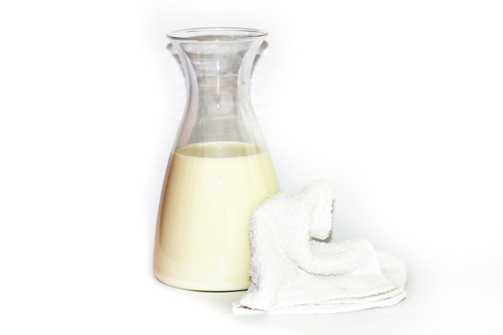 Cold Milk Compress Another version of the above, US News recommends combining cold milk and ice cubes in a bowl. Dampen a washcloth in the mixture and hold against your burn. Rinse after to avoid a 'I live on a farm' smell. Added bonus: milk fat is anti-inflammatory and moisturizing, and the cold temperature soothes the heat.
