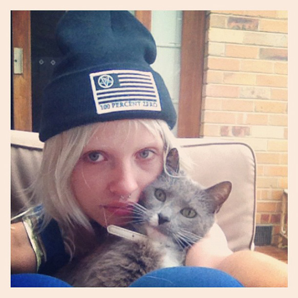 IRL: Australian towhead who identifies with cats of all kinds—she even has "w" tattood inside her lower lip