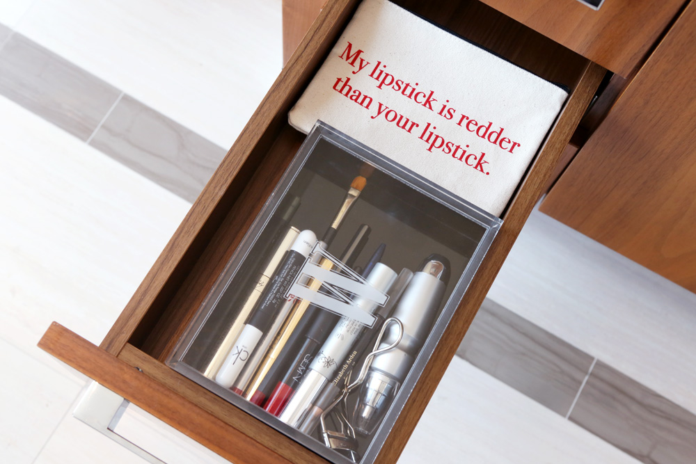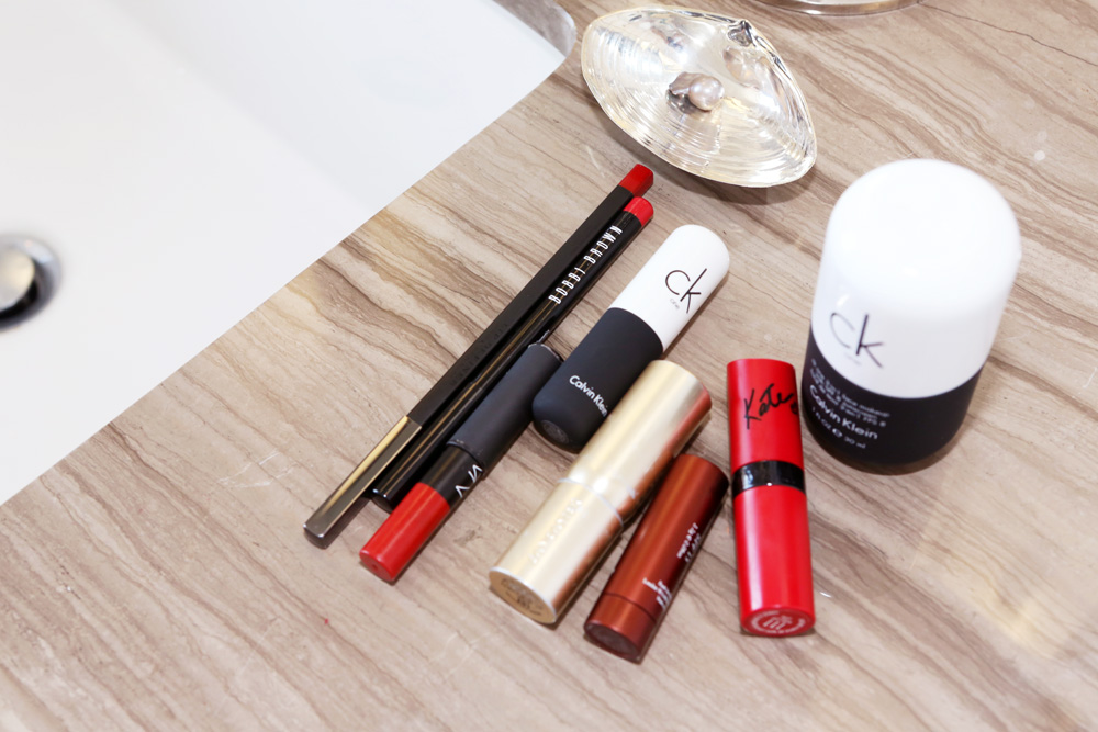 I started in marketing, working with scientists every day to develop products, so I have really learned about what I love. For example, red lipstick, day and night, has been a signature of mine since I was in my early twenties. I even met my best friend through red lipstick! She walked in wearing wearing head-to-toe Yohji Yamamoto, and I was in head-to-toe Yohji Yamamoto, and, of course, we both had red lipstick on. So we were like, ‘OK, we’ll be friends’—BFFs forever. The thing is, red lipstick is so different on everyone. I like mine to be a balance between yellow-red and blue-red. I had the ideal shade made for me in the old Lancaster cosmetic line, and then we made the same color at Calvin Klein, so I could have it. Otherwise I like Rimmel’s Lasting Finish Matte by Kate in 111 . I like thick, real lipstick, not sheer, and it always has to be matte—I don’t like anything shiny. For one, I think it looks better, but it also stays longer. I’ve never worn lip gloss. I use lip liner to set the lipstick, but I challenge you to find a red lip liner. It’s really hard. They’re either burgundy or they’re too pink. I have Stila Long Wear Lip Liner in Passionate and Burberry’s Lip-Shading Pencil in Brick Red Number 5. If I’m going out, I’ll wear matchy-matchy red nail polish. But for day-to-day, I prefer to keep my nails short, moisturized, and buffed.