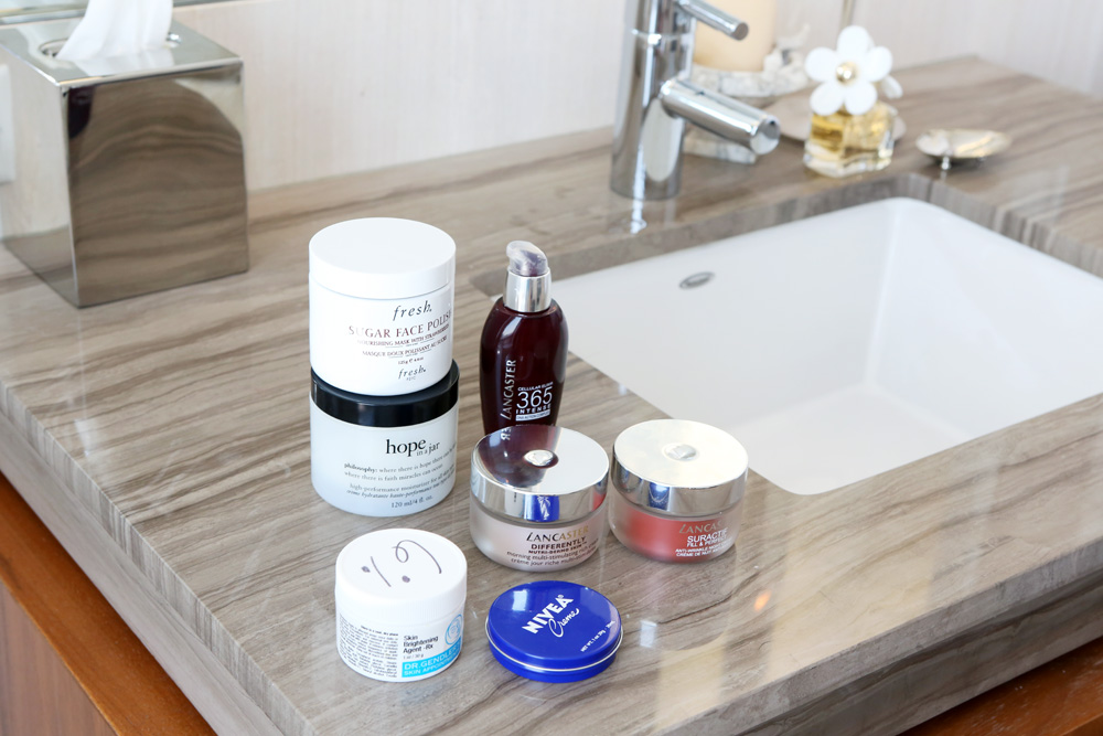 In terms of actual products, I wash my face with Cetaphil. There is no substitute. Then I use a serum, which is the first step to good skincare. I like Lancaster 365-Intense, which is more like an insurance program than something that will give you immediate results. It has DNA preair in it, which changes the structure of your skin over time. I use it every day. I also like Olie Biologique’s organic Argan oil for my hair and face—they feel more mature. And they’re great for at night, or when I’m in Colorado and my skin is extra dry.