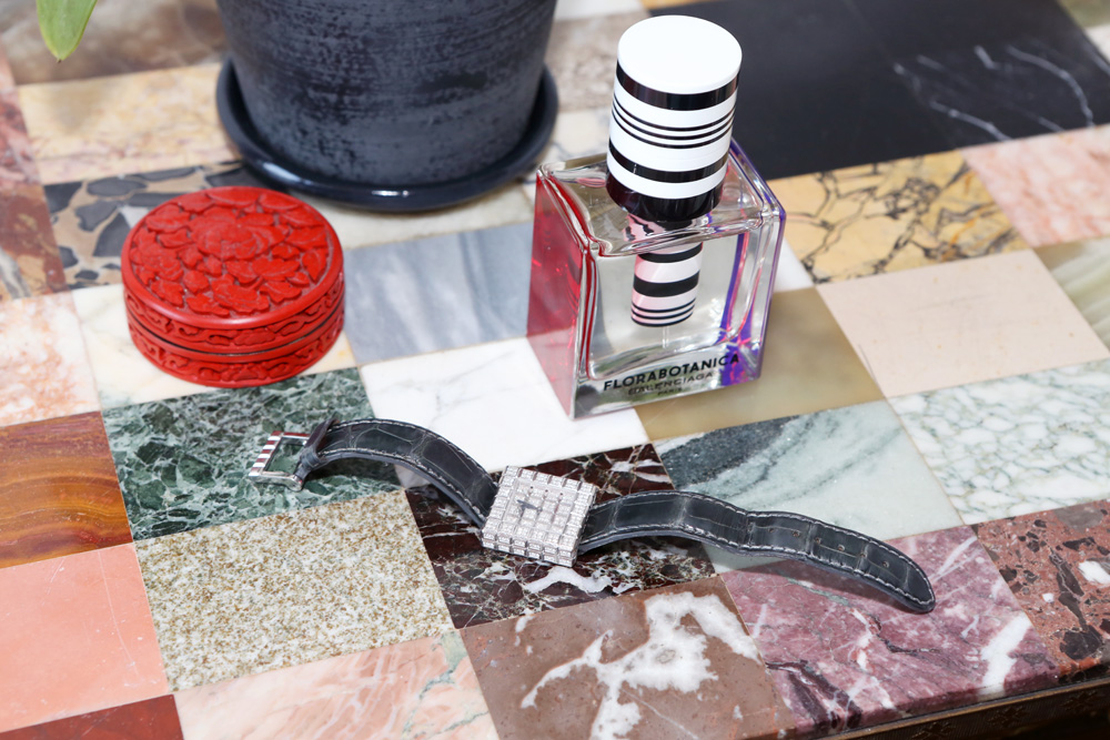 I usually wear fragrance in my hair, too. My favorites right now are the two new Balenciaga women’s scents that I’m testing. But my other favorite fragrance is actually for men. It’s an oud fragrance for the Middle East; I think ouds will be around for a while. Trends in fragrances last a really long time, it’s not like fashion. Do you remember all of those fragrances in the ‘80s— Giorgio Beverly Hills and Obsession—that announced you before you walked in the room? Then, starting with Miyake, everything had to smell like a glass of water. After that, CK One was the first unisex, and that was more of a citrus moment. And now we’re back to men wanting to smell like men, and women wanting to smell like women, distinctively. When we do a lot of market research and we ask what people are interested in, unisex scents are not a big thing anymore.