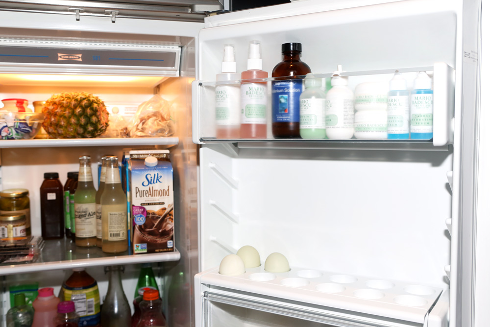 For my skin, I use a lot of Mario Badescu. Someone told me to go to their spa, and, since I’ve been using their products, my skin has felt amazing. Albert and I both wash our faces with Mario Badescu Enzyme Cleansing Gel because it isn’t soapy, and it’s easy to wash off. The Cucumber Cleansing Lotion is basically a toner; it's so good, you don’t even really have to moisturize after you use it. But for moisturizer, I like the Mario Badescu Oil-Free Moisturizer with SPF 17. And, for a refresher during the day, I spray the Facial Spray with Aloe, Herbs, and Rosewater. I keep it in the fridge so it’s extra refreshing.