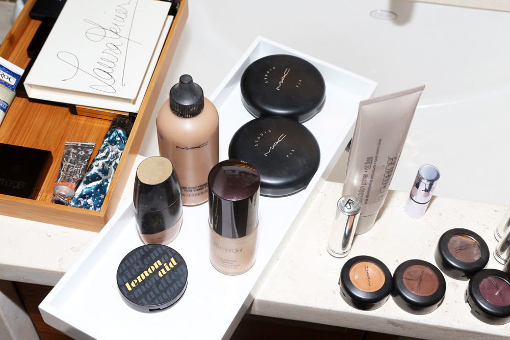 I’ve always worn concealer under my eyes. I’m Indian—My mom is from India, and my dad is from Kenya, but they are both ethnically Indian—so, like a lot of Indian people, I have dark under-eye circles. We always joke that we were born needing a nap. [Laughs] My favorite is MAC Studio Finish Concealer in NC42. It’s also great for spot concealing. To keep it from getting caked into faux wrinkles, I put on RoC Retinol Correxion Deep-Wrinkle Filler—it’s almost like a primer. My friend’s mom told me about it because she said she has the same problem. I don’t have crows feet yet or anything, but if I don’t moisturize properly, concealer will make me look wrinkly. For foundation, I’ve used MAC Studio Fix Fluid Foundation since 2004, but I just found out that I'd been using the wrong shade! Then, the first time I actually went into a MAC store, there was an Indian woman working and I was like, 'I want N-something,' or whatever the color was called, and she was like, 'That’s for you? That’s not your shade.' And she was absolutely right! So I use C6 now, and so do all of the women in my family. It was amazing. If I want something more lightweight for summer, I use MAC Face and Body Foundation in C5. It’s super, super sheer. And, in the dead of winter, when I’m my palest and my skin is super dry, I use Laura Mercier Oil Free Foundation Primer. It’s one color for everyone, and it goes on clear.
