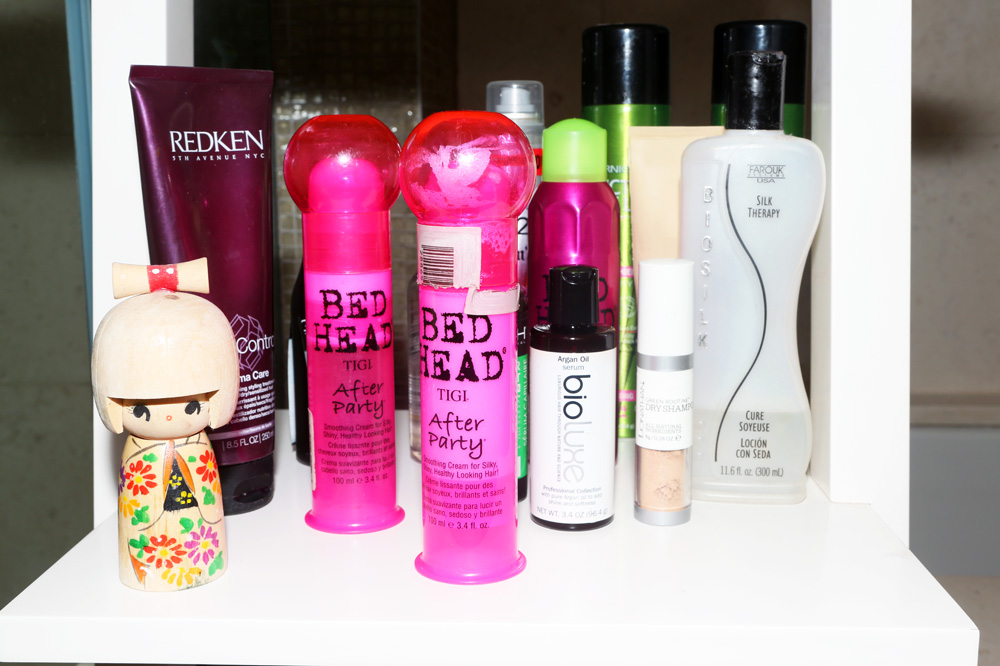 I get my hair cut in Queens at an Aveda salon near my kitchen called Gigi. I’m very obedient, so whatever they tell me to use, I use. I wash my hair with Elucence Beauty and Wellness Shampoo and Ouidad Moisture Lock Leave-In Conditioner. It has been a lifesaver for my hair. It’s heavy, so you can’t really tell, but it’s been thinning a lot. My hair is usually crazy thick, but this is half of what I used to have. To get volume now, I spray a little Eufora Volume Fusion Spray at the roots before I blow dry it. You won’t feel it in your hair at all. And my doctor recently gave me prenatal vitamins, which are apparently great for your hair, skin, and nails.