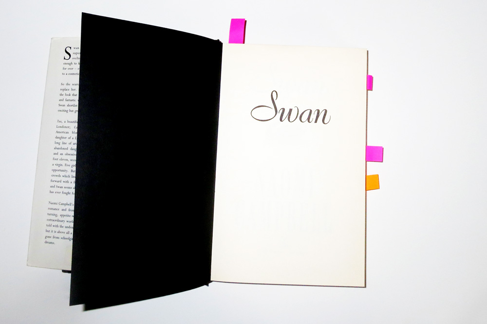 Even if, for some unfathomable reason, you don't care that Naomi Campbell accurately foretold the 1999 YSL spring ad campaign a half decade early—Inspired by famous paintings! Starring Kate Moss! On page 93!—there's still Swan's amazing writing. It's like Daphne du Maurier watched Unzipped, got buzzed off half a Zima, and decided to make Rebecca a dishy roman à clef.