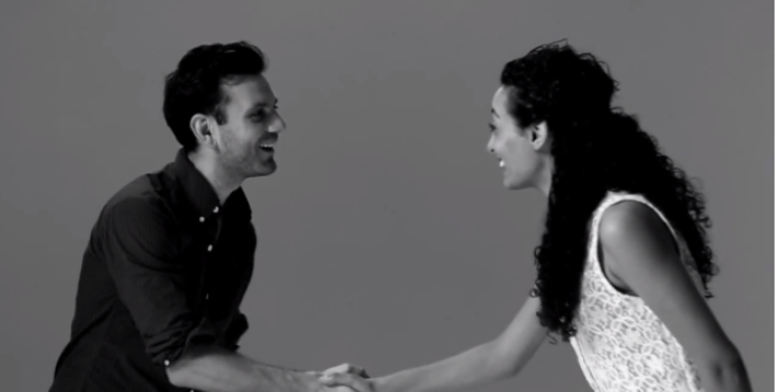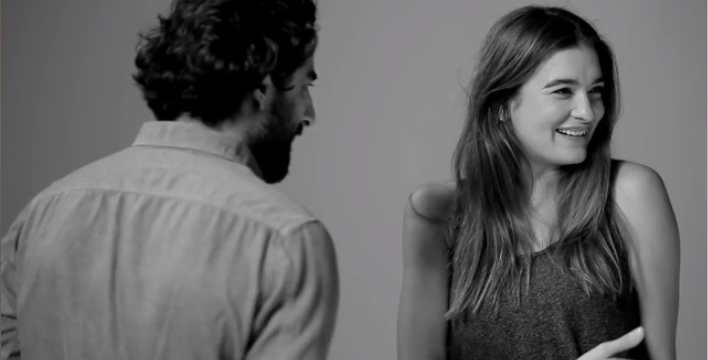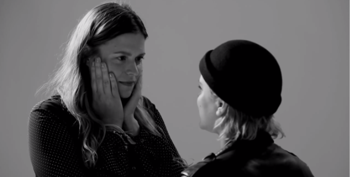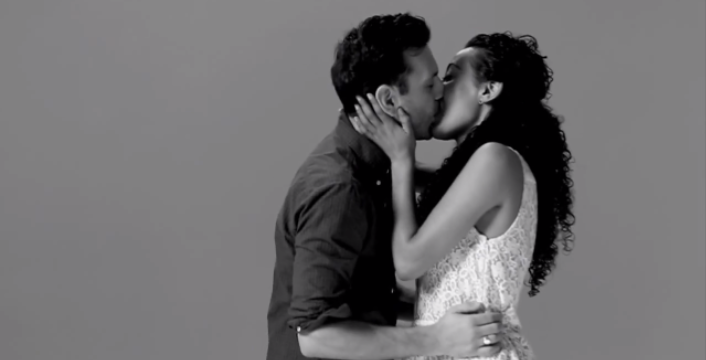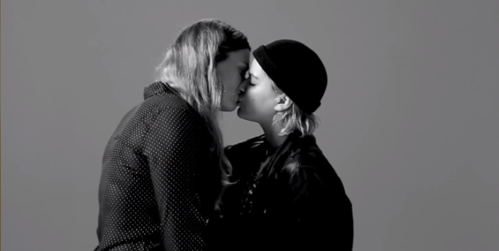 The experience was super awkward, as you can image. I walked in not knowing who I was kissing. It really could have been anyone from the camera guy to the sound guy to the stranger outside walking on the street. Then we were both standing in front of rolling cameras, meeting for the first time, expected to kiss “whenever we’re ready!” It’s quite the introduction, especially with four different cameras pointed at you, about 10 people staring at us, and complete silence other than our smooches. I would definitely say that it was somewhat surreal and overwhelming and awkward. I'm pretty sure you can see the fear in my eyes at the end when I'm smiling—my smile is saying “Get me the fuck out of here!” and instead I say, “Do we make out again!”
