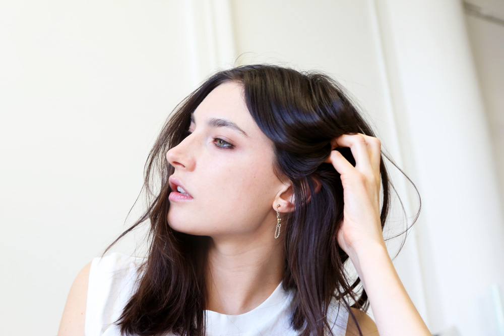 "One thing I do with eyeliner when I go out is this kind of smudgy look. I feel like I can never get it to look natural with a brush or my finger, so, if I have time, I will literally put on eyeliner and get in the shower and let it run a bit. It melts and gets in the lash line, and then afterwards I just clean it up. It sets in perfectly and doesn't look forced. Then I do under-eye makeup—I like the Laura Mercier Secret Camouflage concealer. Also, a makeup artist was telling me that eye cream is kind of...it's good, but kind of a joke. Like, you can just put oil around your eyes and it's as good as a special moisturizer. So I've been trying avocado oil, which is nice and feels really soft. With some products, I feel like there are so many things in them and they kind of burn—even an eye cream I got from my dermatologist! But the avocado oil is good for sensitive skin like mine.”