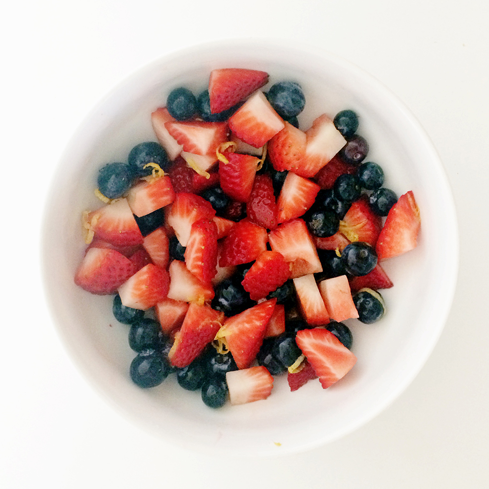 - Combine the topping ingredients in a medium bowl. Adjust amount of maple syrup and lemon to your taste—I used a dash of maple syrup, a squeeze of lemon, and about a teaspoon of lemon zest. Set aside.