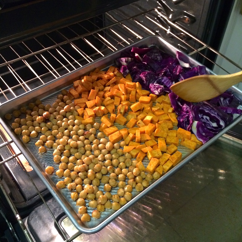 All are great to enjoy on their own, throw onto salads or pastas (e.g., roasted broccoli and red cabbage), or toss into baked goods or smoothies (steamed sweet potatoes and beets). Choose ones that have similar cook times so you can throw them into the oven or steamer all at once, and add chickpeas to your roasting sheet for an easy way to add protein to salads.