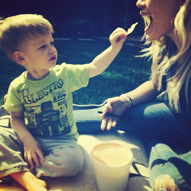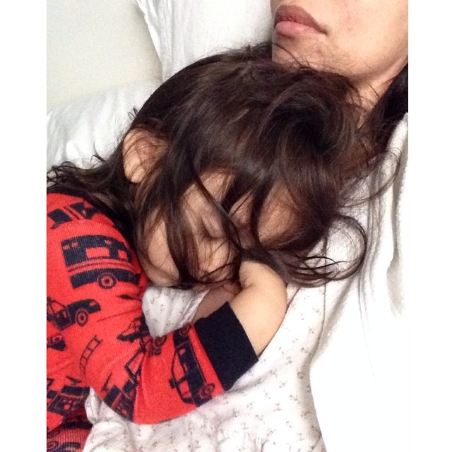Insta Style: Sleepy-faced selfies, burgers, eggs, lobster and fries, backseat shoe snaps, and yet another curly-haired Cool Mom kid, her son, Riley.