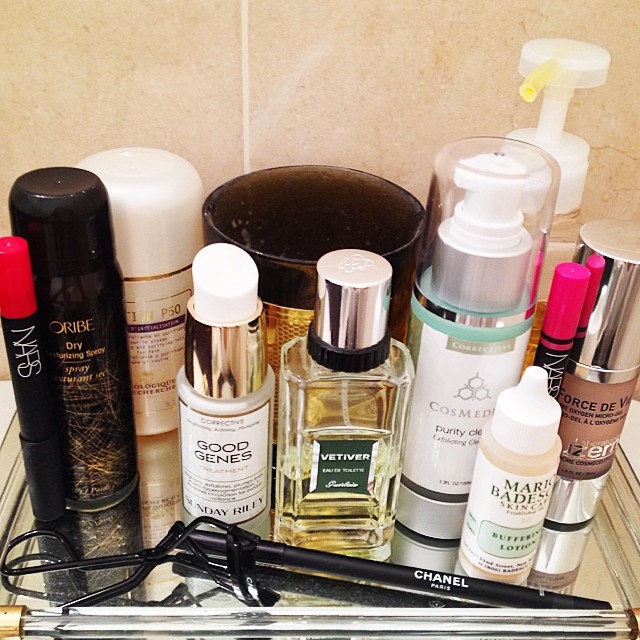 It's taken me a long time to figure out a routine that works for me. I would love to be one of those girls who slathers on a custom blend of rare tree-nut oils to achieve that 'glow,' but my skin misbehaves and needs no encouragement to make my life harder, so I’m always looking to achieve that tricky balance between moisture and exfoliation. In the morning I wash my face with Cosmedix Purity Clean. It smells minty and wakes me up, which is semi-unfortunate, because I also use it right before bed. I really like Luzern Laboratories Force De Vie Micro Gel. It's lightweight, but has managed to sufficiently moisturize my face through NYC summers and polar vortexes alike, so I think it's a keeper. Last, I'll smear on some Andalou Naturals Oil Control Untinted SPF 30 BB. It goes on with a slightly white cast, but that disappears after a minute or so. Before bed, I wash with Purity Clean again, and then I'll either use Biologique Recherche Lotion P50 or Sunday Riley Good Genes—the former if I feel like my skin is on the verge of doing something terrible, and the latter otherwise. They're both great exfoliators, but going by the odor and the really unique expression my husband makes when he smells it on me, I think the P50 is a bit more intense. Mario Badescu Buffering Lotion is my nuclear option for any spots attempting to surface, and Kate Somerville Exfolikate makes my face feel like glass when I use it, usually on weekends. Whatever I'm using, I spend some time working it into my face to get the most out of the product.