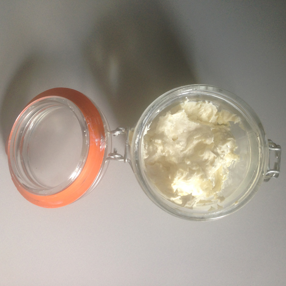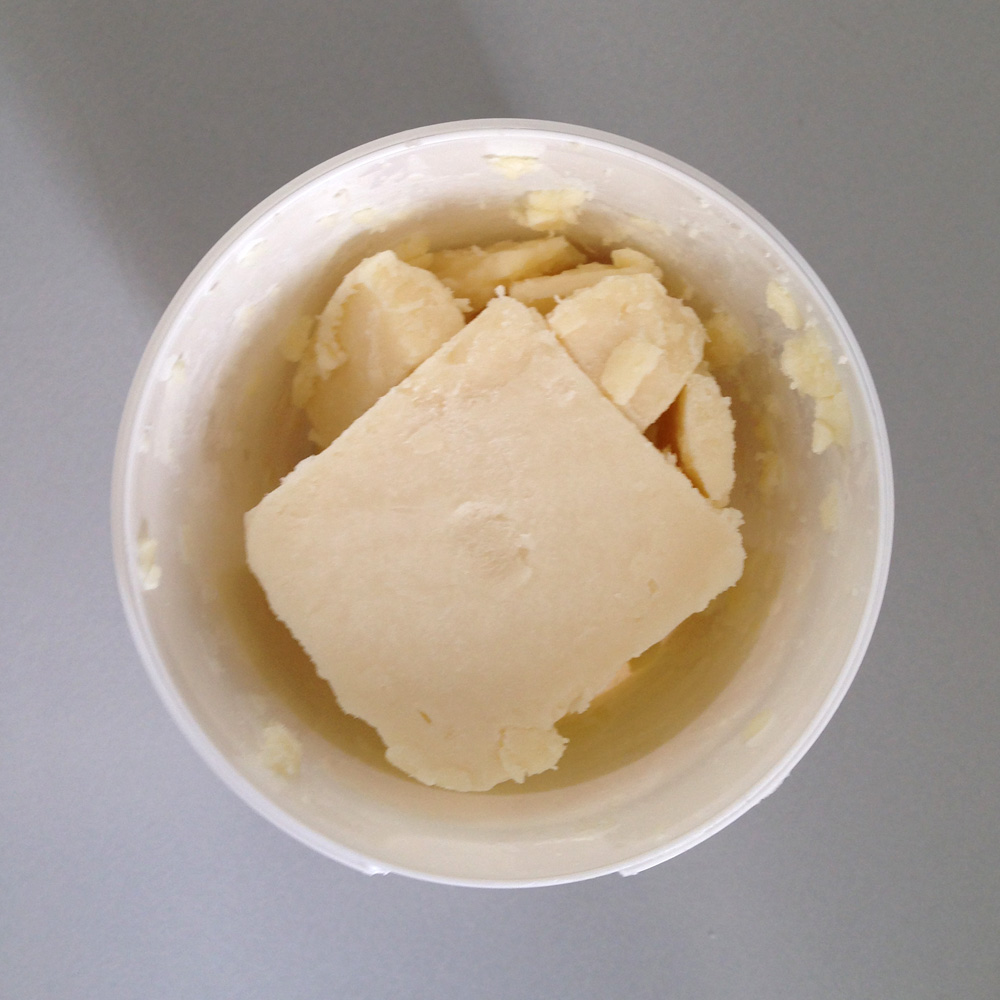 - Combine shea butter, coconut oil and beeswax in a large jar.