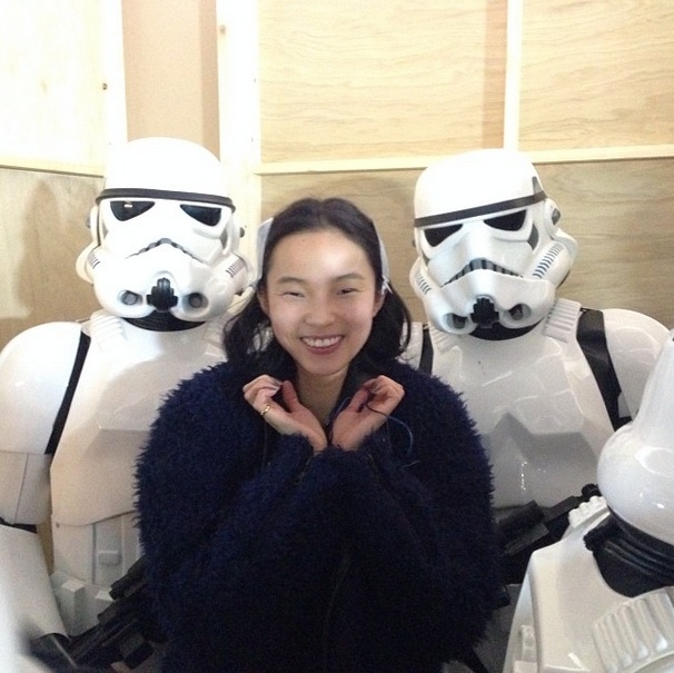 IRL: Yana's of Korean and Russian descent, with bleached hair and eyebrows and an impressive collection of sweatshirts.