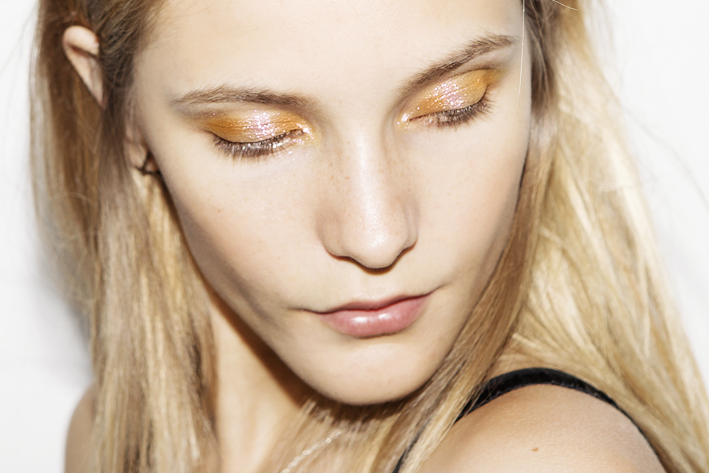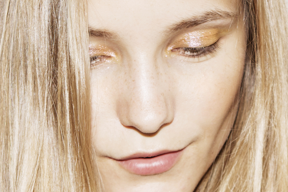 But the real star of their beauty collection, at least currently, is the Chameleon Glow Eyeshadow, specifically in Shuffle The Cards— a yellow metallic that flashes warm baby pink depending on the angle. Wet it with eyedrops and load a short, fluffy but stiff shadow brush with the flakey metallic pigment and press onto the lid for full impact (Nars Wet/Dry brush was made for this exact purpose). Blend and shape with a clean, fluffier brush to diffuse the shadow nicely over the entire lid and soften any edges.