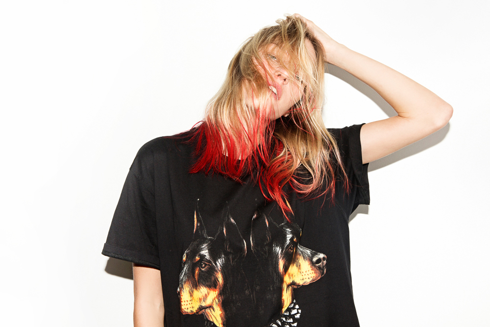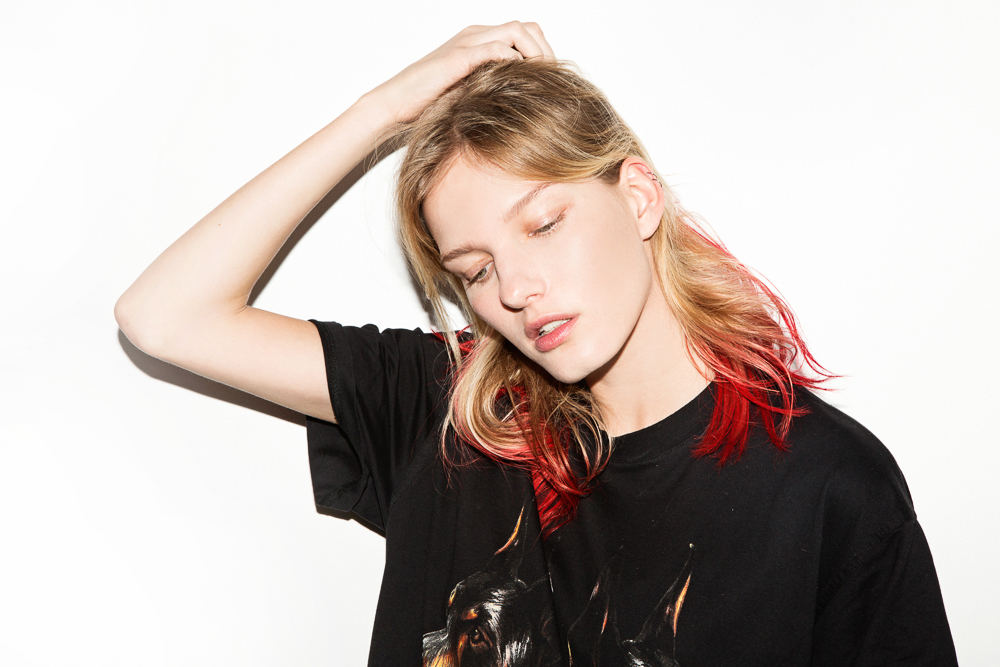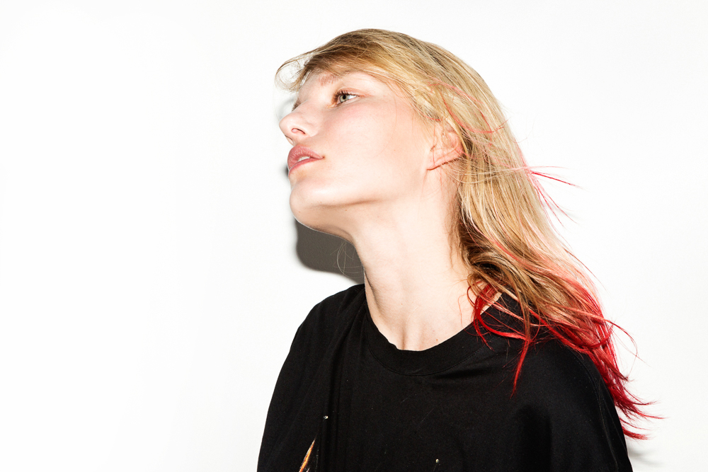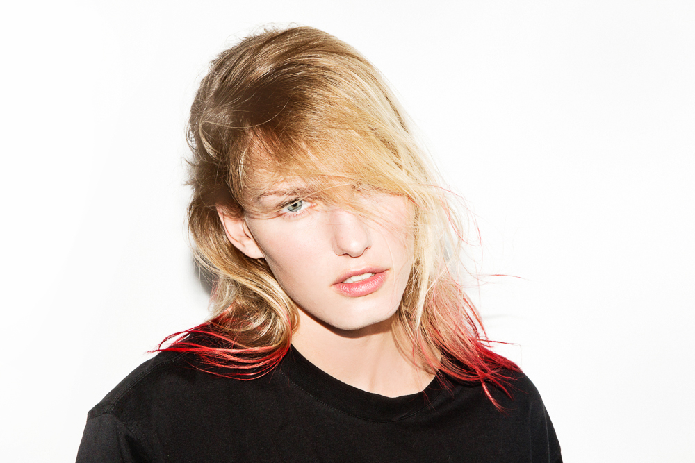 Marique Schimmel (Supreme) in Redken Color Rebel in Red-y To Rock and Rebel Without A Coral, photographed by Tom Newton. Hair by Annie Kreighbaum.