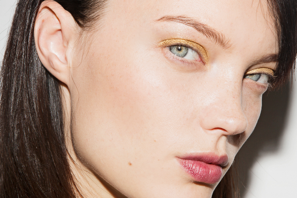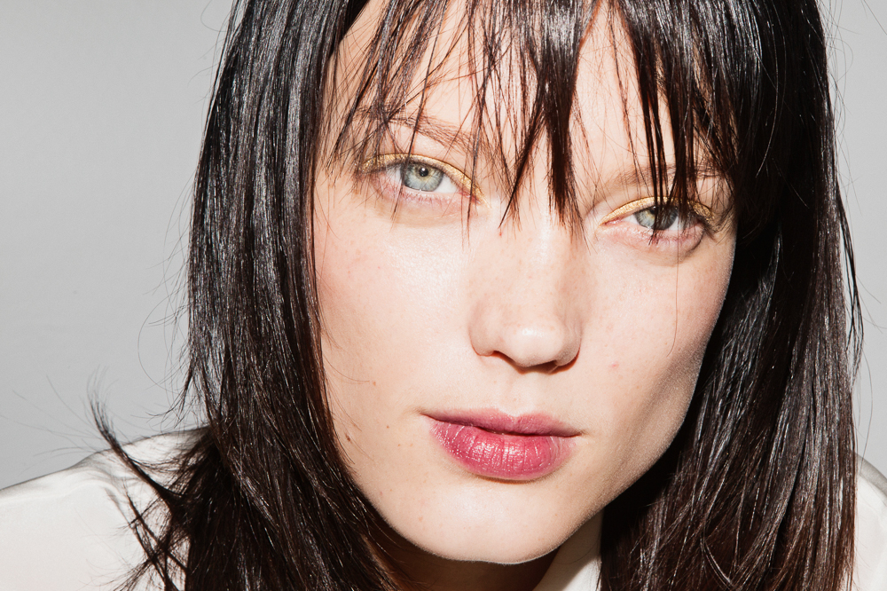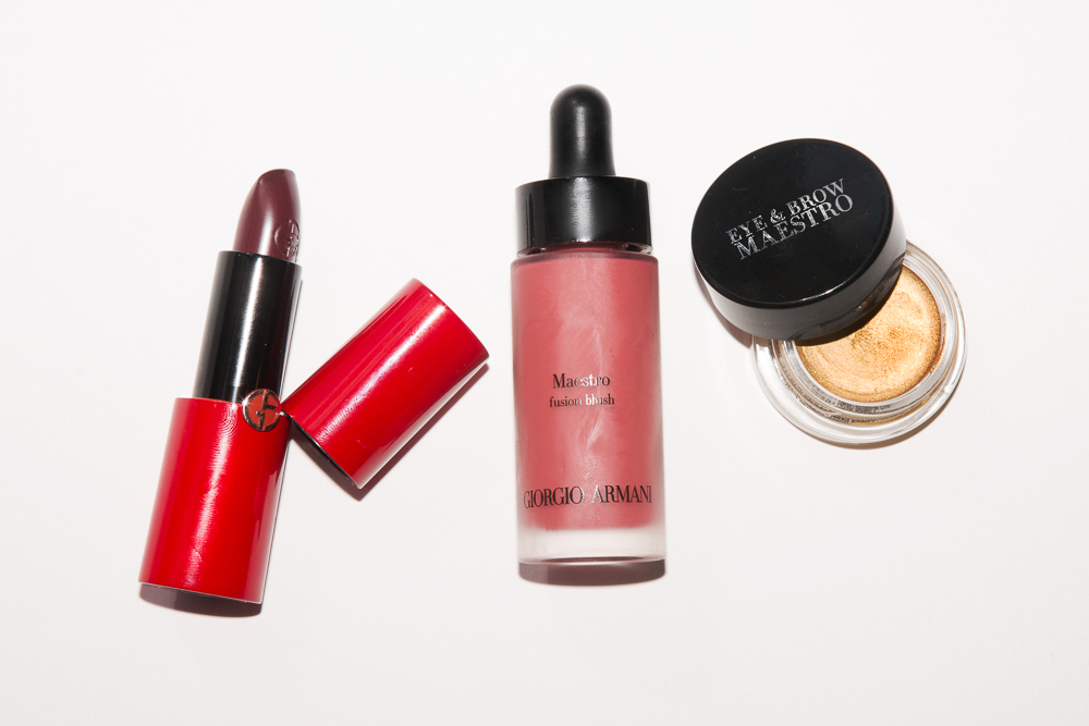 Naty Chabanenko (NEXT) in Giorgio Armani Maestro Fusion Blush in 400, Eye & Brow Maestro in Gold , and Rouge Ecstasy Lipstick in Four Hundred . Photographed by Tom Newton. Makeup by Annie Kreighbaum.