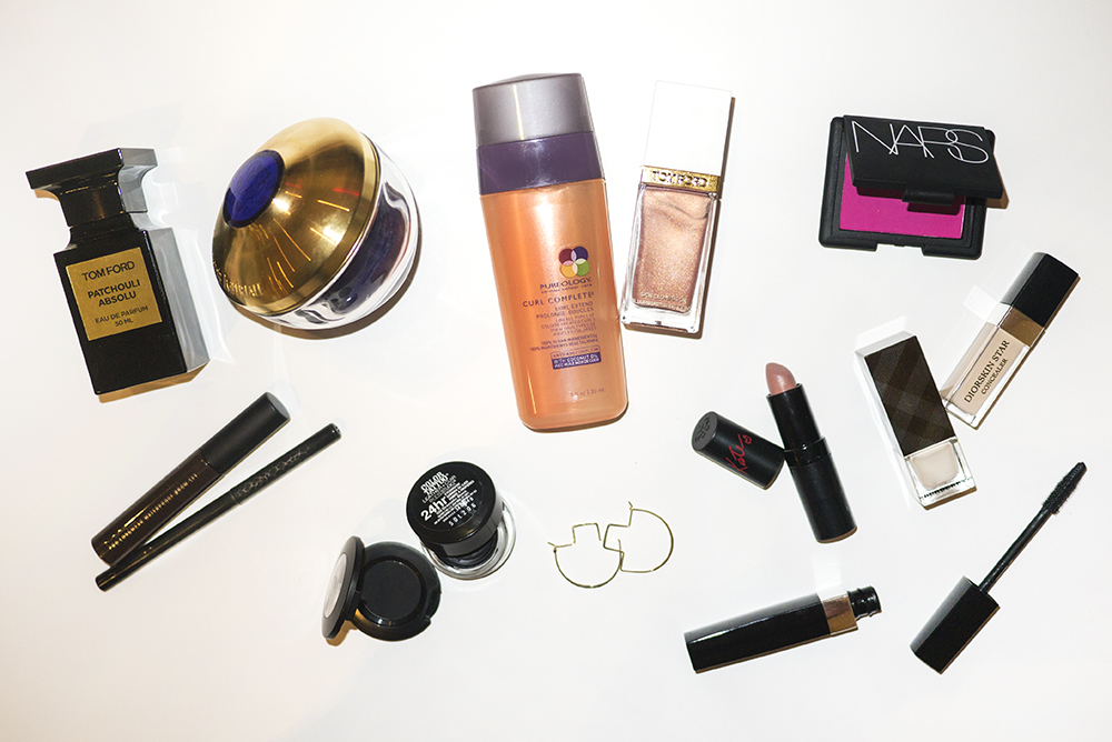 On my skin is Tom Ford Fire Lust Skin Illuminator, which I was skeptical of at first for its orangey appearance, but now I really love because it gives a warm glow without making you look tanned or bronzed. Then came Tom’s Patchouli Absolu perfume over a generous smearing of Guerlain Orchidée Impériale Neck & Décolleté Cream. It’s one of my more extravagant regular products, but I really love it because it’s the only body moisturizer I’ve used that gives a long-lasting patent, oily sheen without the oily feeling. It also doesn’t leave grease stains on fabric.