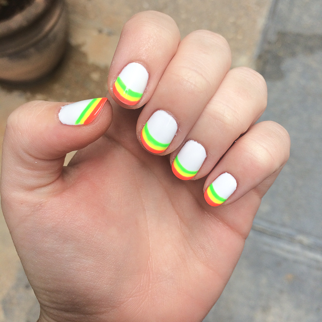 Before we left for France, I went to Valley Nails and got the brightest manicure I could dream up. But, before the ceremony, my friends gently suggested that glow-in-the dark neon nail art might not look great in wedding pictures, so I went for a more neutral light pink instead. Nail dilemmas were nothing compared to the stress of walking with that ten-foot train. I was just thrilled to make it to Teddy at the end of the aisle, and to look like me while doing it.