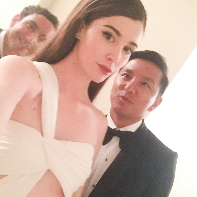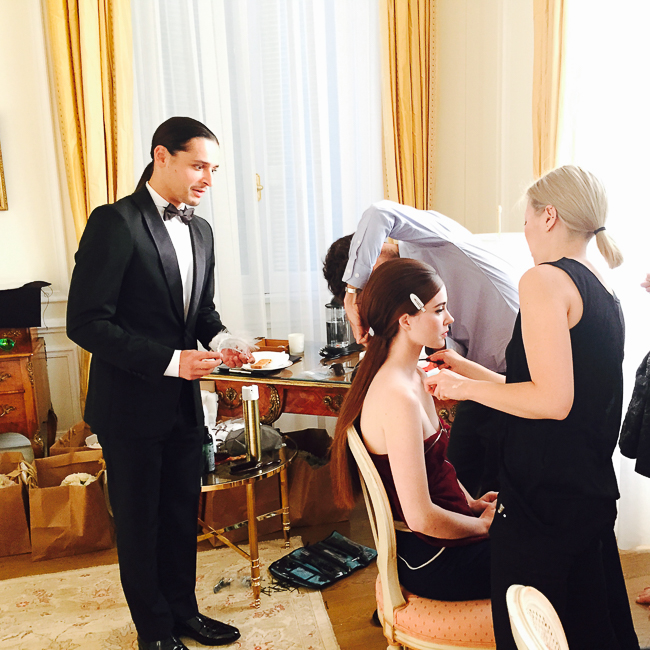 The dress design process was a little more involved. I had three meetings with my good friend Olivier Theyskens, who graciously designed my gown. When he first sketched it for me, I got so excited that I spilled my tea all over his drawing! The second and third meetings were at his studio in Paris, where I had the dress made around me. Olivier arranged for two of his friends—Mayumi and Luciano—to try out some makeup and hair looks. My brother actually got married two weeks before Teddy and I did, so I got a chance to test drive some some of that.