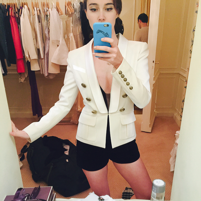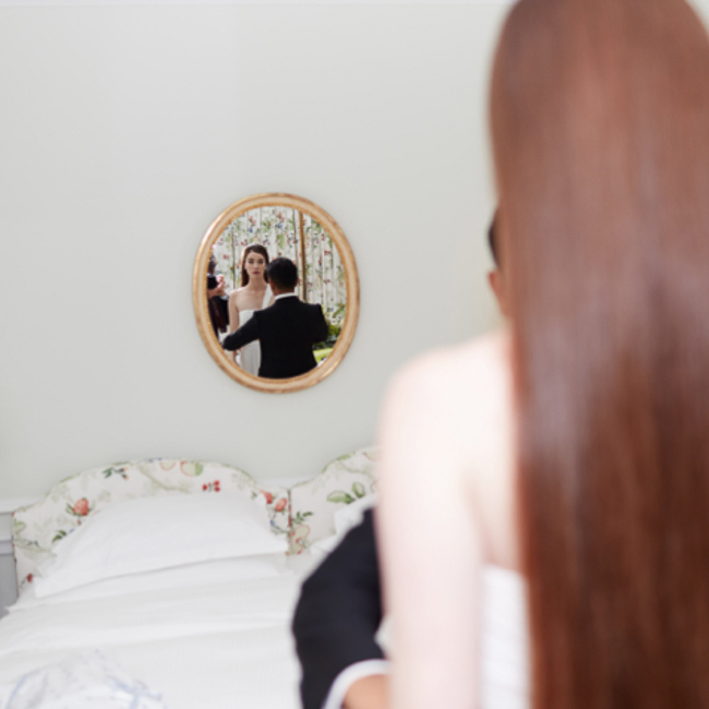I’ve always thought it’s strange how some brides look completely different on their wedding day—all contoured and bronzed. I just wanted to look like the best version of myself. Having a French makeup artist was a dream—she had bags and bags full of my French pharmacy favorites, Bioderma and Embryolisse. Mayumi did an amazing cat eye and kept my lids light and shimmery. I love to look really pale, so she just used a little bit of pink blush and added some pink lips. When I changed after the ceremony, she added a little more liner and a smokier shadow that lasted all night.
