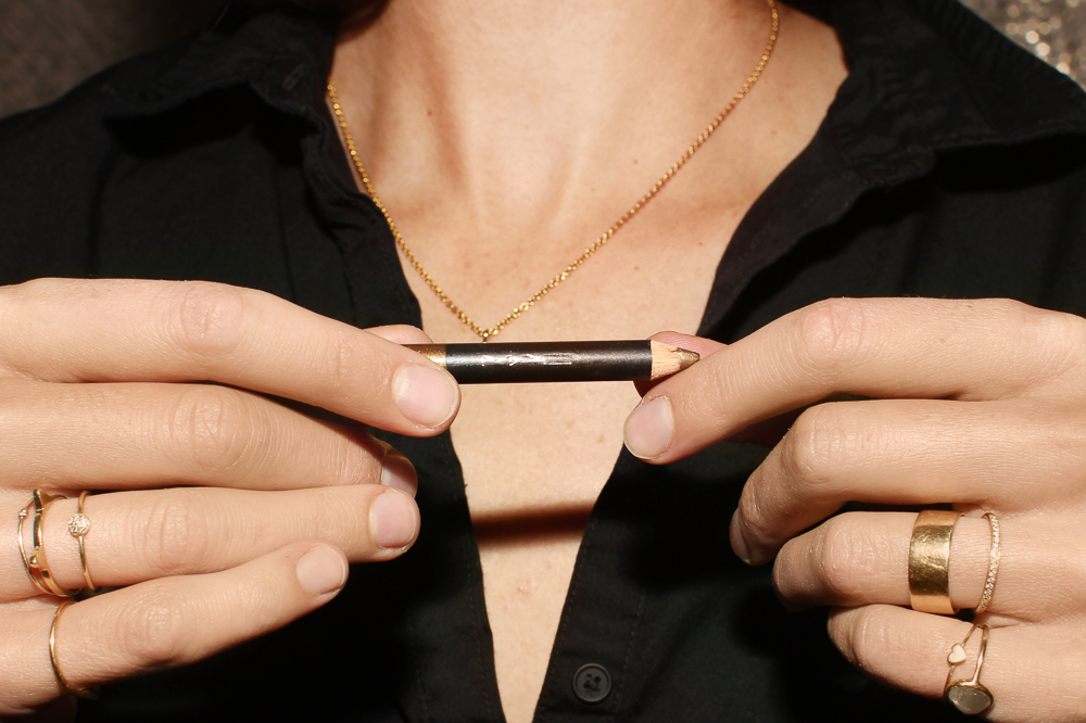 About a year ago, I had a makeup artist do my makeup for a shoot and she put gold eyeliner under my eyes. And ever since then, if I’m going out and putting my face on, I use MAC Eye Kohl in Powersurge under my eyes. I’m wearing it right now actually. It’s very subtle and just picks up some of the gold flecks in my eyes. And gold feels like more of a neutral for me. And that makes me feel like I don’t need anything else. Sometimes I’ll highlight—I learned how to do that from Alice Lane. Tom Ford has a really good compact for it, but even using Aquaphor on your face where the light hits it will make you look dewey. I love putting the RMS Living Luminizer under my eyes to brighten everything.