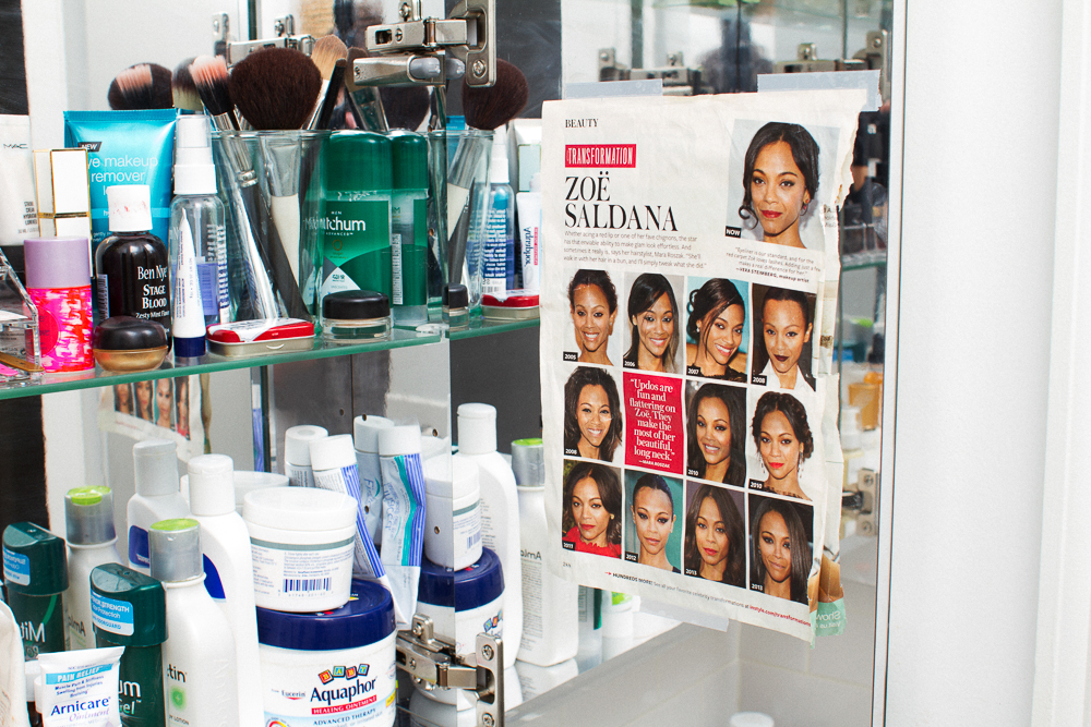 I keep this InStyle page of Zoe Saldana up because I’m not gifted with the application of makeup and this has every look I’d ever want. I think she’s super cool and elegant, and I’m like, 'I can kind of do this!' It’s a cheat sheet.
