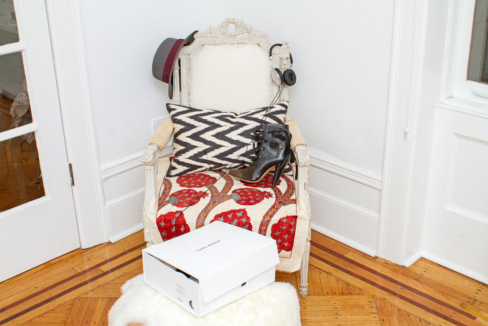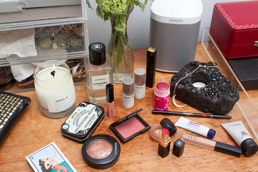 I’m always on the lookout for the perfect nude lipstick. I think Julep does a good one. It’s called Timeless, and it’s not fancy but it’s the perfect shade. Tom Ford also has the best colors, but they sell out so quickly. I’m wearing one of his right now. I like Burberry Lip Glow Natural Lip Gloss in Vintage Gold #18 [limited edition, discontinued] in Copper paired with MAC Tinted Lip Glass in C-Thru on top—one over the other. I’ll do a smoky eye if I’m going out—I waterline and put some Nars Limited Edition Hardwire Eyeshadow in Opal Coast in the corner of my eyes, with a small brush. My ultimate beauty accomplishment will be when I can do a cat eye but that hasn't happened yet.