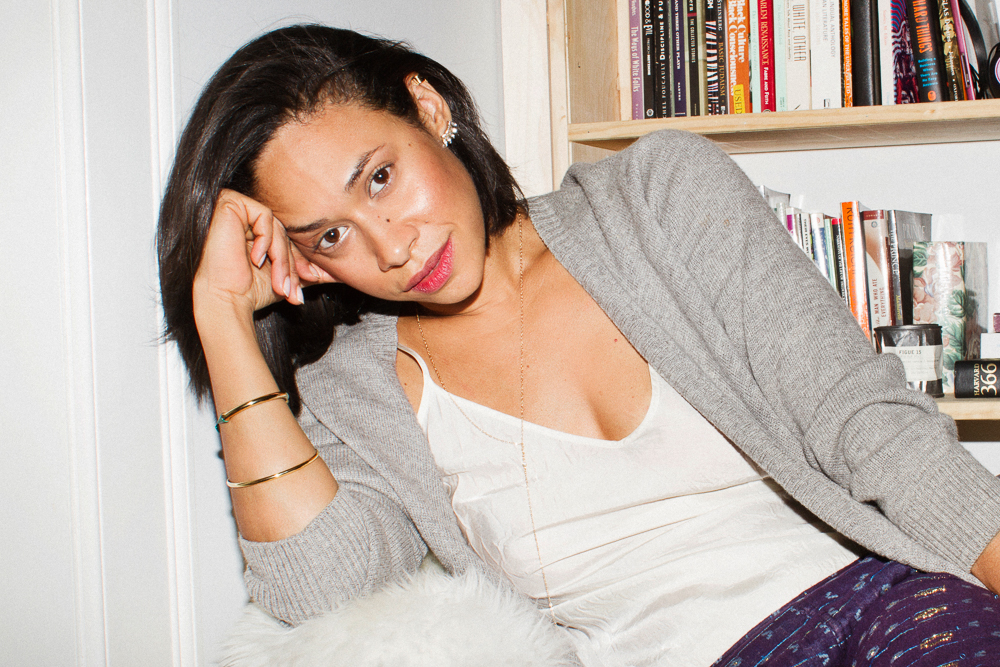 I resisted for so long doing the whole nail art thing, and now I’m a devotee. I would always do clear just because I don’t like cracked nail polish—I’m a bit of a nail perfectionist. I’m very into understated nail art now. I go to Primp & Polish on Bedford Avenue now. It’s the best. Right now I have just one gold line—subtle, right? I’ll often do a half moon, and that’s kind of become my signature look.