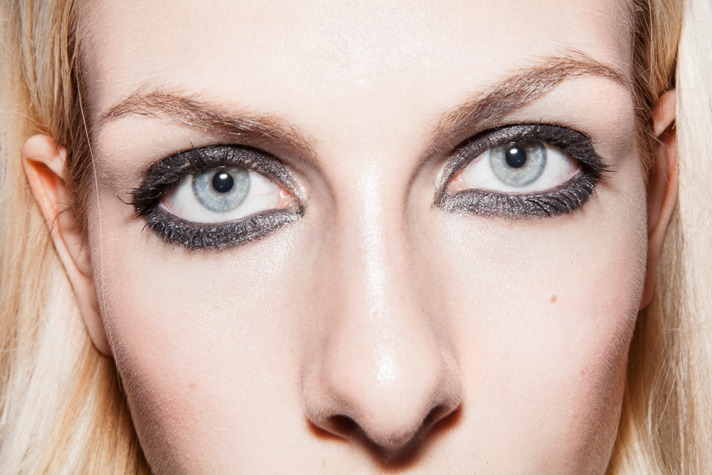Numero dos: a dreamy sky-meets-sea wash of blue. Alice kept the lid itself bare and brushed on the blue pigment from Topshop’s Smokey Eye Palette in Atlantis everywhere but the top lid—so, just below the eye and all around the brow bone. It’s not about structure so much as it is about a cool wash of color—like if David Bowie had a stint as a mermaid. Alice lamented that sometimes girls shy away from blue. “There is no ‘wrong,’ you know? That doesn’t exist,” she said. “If it goes wrong, you just wipe it up.” On lips, Alice used a MAC Lip Pencil in Vino, smudged around and warmed up in the skin before applying on the lips—something deep to balance and set off the bright aquamarine.