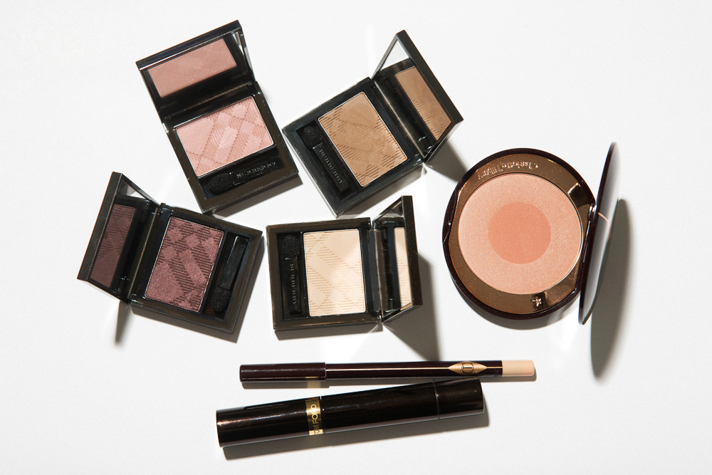 For the third look, Alice switched gears completely. If the previous two felt tropical, this one's a little more cosmopolitan. “It was Belle Du Jour, like a Catherine Deneuve classic blonde—she looks really expensive and chic. I like it because it’s not too heavy or fussy.” The idea is warm neutrals that glide on seamlessly. She used four of the suede-like Burberry Eye Colour Wet and Dry Silk Shadows— Stone, Almond (a lynchpin warm neutral tan), Tea Rose, and Mulberry. Then she swiped on Charlotte Tilbury’s Rock ‘n’ Kohl Iconic Liquid Eye Pencil in Eye Cheat, a light peach shade, on the waterline to make the model’s eyes big and bright. Alice then brushed on a little Tom Ford Illuminating Highlight Pen in Citrine around the under-eye area and blended it into the line of eyeshadow for a seamless, perfect transition. A little Charlotte Tilbury Cheek To Chic Swish and Pop Blusher in First Love on the cheeks to round out the romantic bent. It’s fresh, polished, and modern—more like Belle Du 2015.