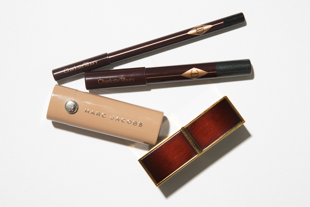 Fourth, final look: Margot Tenenbaum with an edge—an intellectual, almost melancholy take that’s all about dichotomy. “Margot is so nerdy, but she’s got that tough eyeliner,” Alice said. Taking on the challenge, she lined the model’s eyes with Charlotte Tilbury Colour Chameleon in Black Diamonds, which is specially formulated for blue eyes. It’s a dusky graphite with a blue cast that Alice accented with the very black Charlotte Tilbury Rock 'n' Kohl Iconic Liquid Eye Pencil in Bedroom Black on the waterline. The nude mouth came courtesy of Marc Jacobs New Nudes Sheer Lip Gel in Anais and the points of light and creamy apricot highlights were all down (again) to the Tom Ford pen. Alice made double use of that Topshop Cheek Jelly (previously of the 'Whisky Look') by blushing and contouring up the model’s cheek. Alice was pleased she nailed the Margot influence, and, upon reflection, added, “Very sort of Saint Laurent as well, this look.” So it’s good either way.