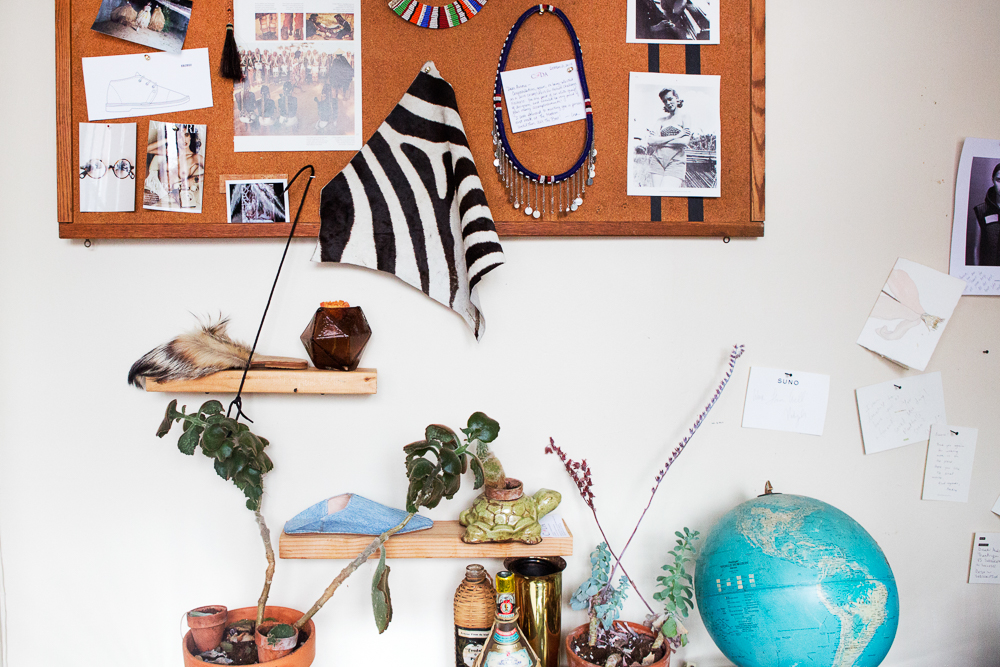 Eventually I moved back here to New York and worked on some random projects—things like producing Hood By Air’s first show and generally dabbling in different creative ideas. Then I went to Nigeria, Morocco, and Namibia with my good friends Darlene and Lizzy from William Okpo. I’d heard a lot about traditional African shoes like 'vellies,' which are desert boots, to 'baboush,' the traditional Moroccan slipper. My mom always had a lot of different traditional shoes, and I grew up wearing mukluks. The idea of things that are natural to certain areas of the world was really in my mind, when designing my shoes. But at the same time, I found that a lot of people didn't want to wear their traditional stuff anymore. They want to wear whatever they saw on Kanye or Kim. What happened in these countries was that all these people who had been making shoes for generations were losing their jobs. It was really sad. Now, I work a lot with different people based in traditional skill sets. We have our workshop in Kenya, and it’s been really great because I’ve been able meet artisans who I otherwise wouldn’t be able to work with.