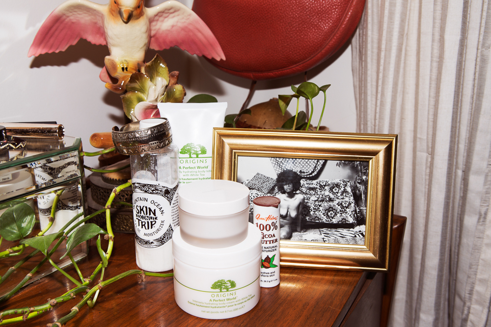 I use Origins' A Perfect World Intensely Hydrating Body Cream with White Tea as body moisturizer, and then I use Skin Trip Mountain Ocean Coconut Moisturizer on my hands because it smells good. The RMS Beauty Raw Coconut Cream is really good for winter. I don’t think there is any difference between the RMS coconut oil and any other generic brands, but I picked it up on Net-A-Porter one day just because. I’m one of those people that’s totally random like that—like, I’ll buy candles without smelling them. One of my candles is the Byredo Tree House Candle and as soon as I heard the name, I was like, 'What is that? That sounds amazing—I’ve got to have it!' But, who buys a candle without smelling it?!