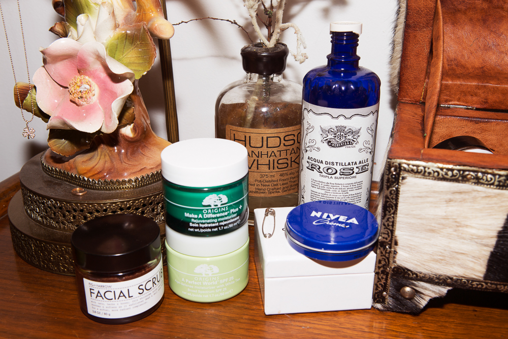 Up until a few years ago, I just used soap and water on my face, but after a while, I felt like I was starting to look older and asked a makeup-artist friend of mine for some advice. She was like, “moisturize!” So, I got recommendations from my friends and tested different things out. Now, I have a bunch of different moisturizers that I use and each one reminds me of the friend who recommended it to me. Like, the Origins stuff that I use— Make A Difference Plus Ultra-Rich Rejuvenating Cream and A Perfect World were recommended by my friend Ali, and the Weleda Almond Soothing Facial Lotion was recommended by Karen. It's transformed my skin. Since I started using them, I don’t have these rogue lines anymore.