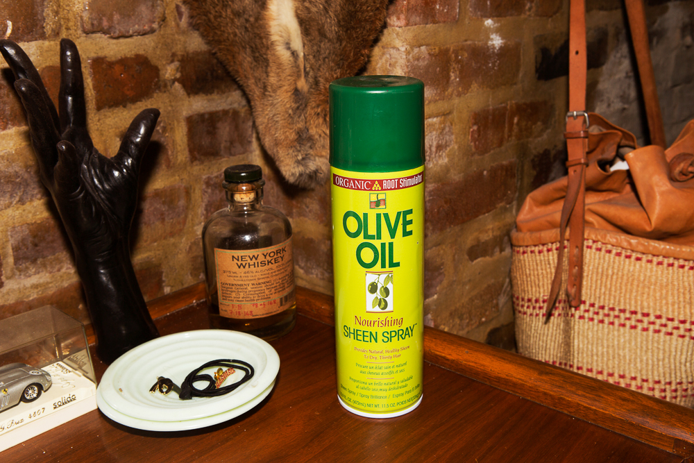 When I go to Africa, I always take Organic Root Stimulator Olive Oil Nourishing Sheen Spray because you can use it for anything. You just get it from the African American section in the pharmacy…I spray it on my legs, on my arms, on my hair—just anywhere. It’s basically just olive oil, but I love it. It’s the easiest thing to bring anywhere, and it doesn’t have a hardcore fragrance so you don’t have to worry that the mosquitos will come for you.