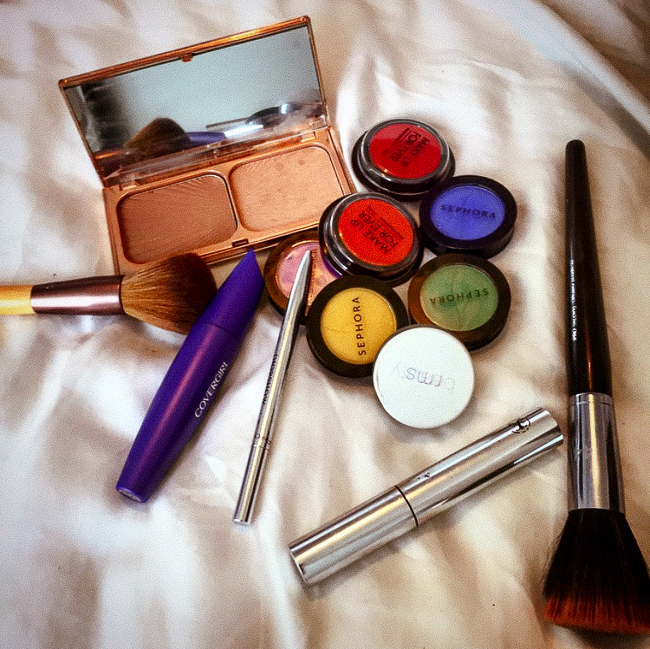 For my makeup, I didn't want to go too over the top, so I decided to just do my eyeshadow in a spectrum to represent equality and the L.G.B.T. flag. It's always fun when you get to experiment with makeup and try something new. I started by applying blue eyeshadow on my top eyelid, accentuated by purple eyeliner on the lash line—smoked out to a wing. On my crease and up to my brow bone, I applied eyeshadow with all the colors of the flag in reverse-rainbow order. I found a lot of examples on Pinterest, so it was pretty easy to get inspired. The best part, though, is that you can add your own flair to it!