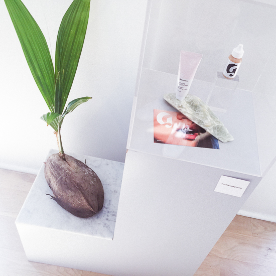 Big ups go to Marguerite Wade, set designer extraordinaire and the creative force behind both this Showroom and the Glossier Pop-Up from last fall. In that vein, hearty congrats are also in order for Creative Director Helen Steed and Designer Dilan Walpola, who literally climbed into the rafters several times to make this all happen. And, as always, many thanks to resident Gloffice florist Marisa Competello for her typically excellent arrangements.