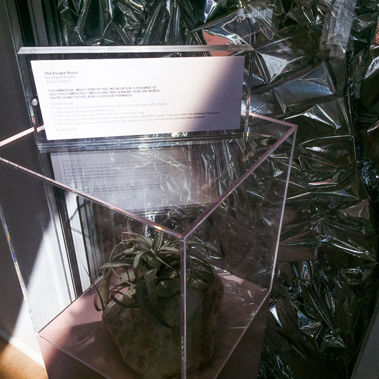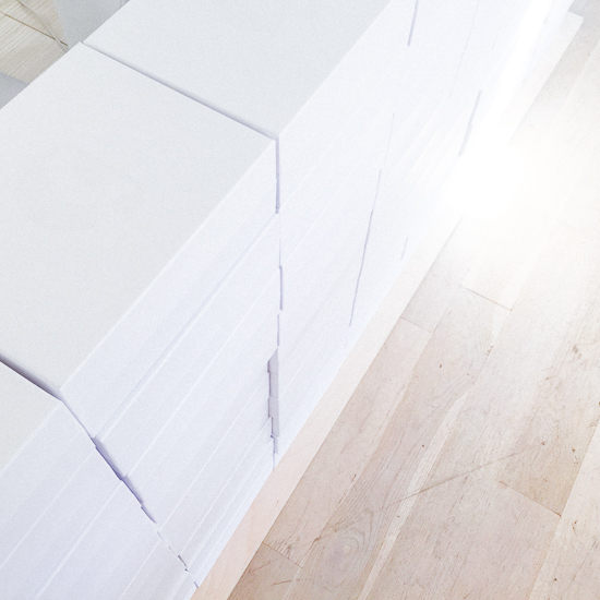A little more info: Starting today, anyone who's in the New York City area on a Friday from now until Sept. 11 can pop into the ITG/Glossier penthouse and kick back for a while (as in between 11am and 6pm). Inspired in no small part by the recent launch of our vacation-scented Coconut Balm Dotcom, there'll be a relaxation space/immersive art installation as imagined by artist Grace Villamil (really, she's the epitome of chill—you'll meet her on ITG soon). Think of it as a sort of a meditation room where you can escape your phone for a few minutes—you can even leave it in a charging station outside. The floor is essentially this big mattress and there are bean bag chairs and soothing, roaming lights...we've already been holding meetings in it when you guys aren't around.