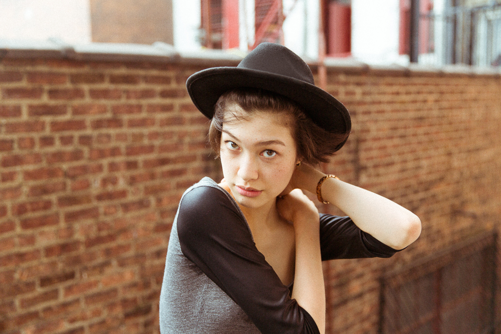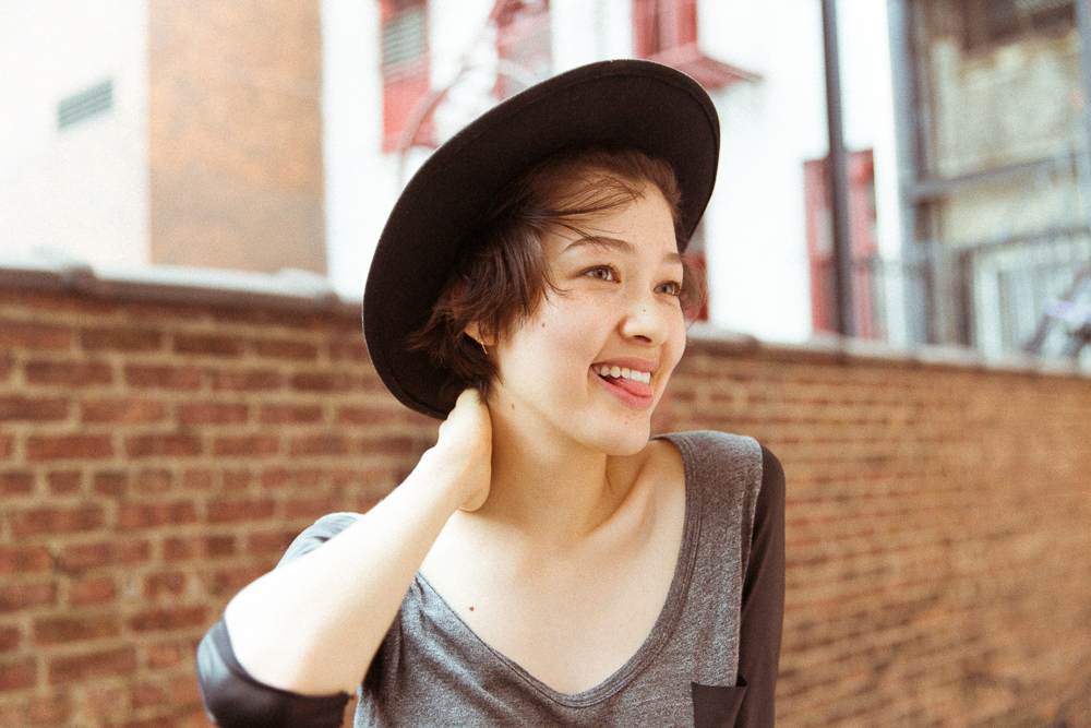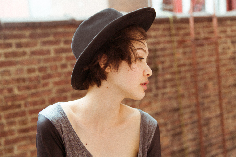 Kouka has it all figured out, though. She walked into the Gloffice wearing gold-studded high-top sneakers (a street find from Japan *ugh, of course *), super-cool athletic shorts fashioned out of leather, and…wait for it…in the middle of a H-O-T New York summer, this girl walked in wearing a black felt hat—like those wintry-looking ones that you have to be sort of bold to pull off even when they are weather appropriate. Obviously, it became fodder for small talk: