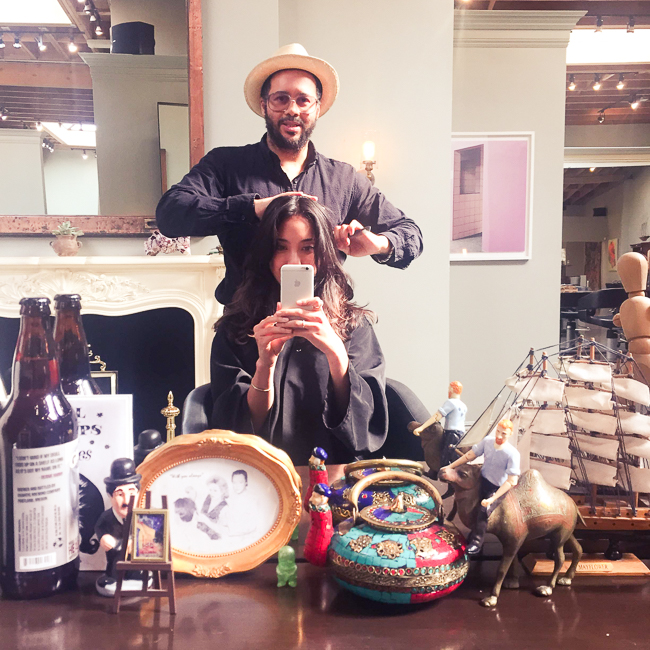 The salon is a haven for creatives, and you can feel and see it when you walk in. “I’m trying to build a team and have it be part of the culture of our salon that we do things together. Movie nights, art history classes, yoga…” That’s rare, I note, and he agrees. “The norm in this town is to try and make friends with a celebrity, do their hair as much as possible, hope they get famous, and then ride their coattails,” he says. But his strategy has always been simpler than that: “just become really good.” He tells me that cutting or coloring hair is like playing an instrument (or doing anything art-based). “You’re never there, you never achieve it. You just create a goal, and you run toward it for the rest of your life,” he says.