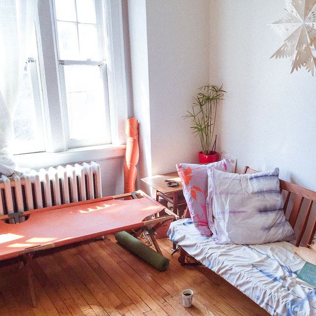 I knew I wanted to be in the Mile End neighborhood strictly because of the Fairmount Bagel and St-Viateur bagel war. I'm not food-obsessed, but I wanted our Airbnb to be in the same vicinity as Schwartz's Deli (the Katz's of Montreal) and Kem CoBa, which serves up the most insanely tasty and inventive flavors of ice cream and sorbet. I prefer to be unobtrusive and avoid meeting my Airbnb hosts—it's less personal that way. I don't picture them sleeping in their bed before I crawl in. However, in this case, I was fortunate to meet the owner of the Airbnb building. I aspire to be like this woman. She's radiant and in her 40s. She held the previous owner's hand through his elderly years and finally was able to purchase the building from him. She divvied up rental units and slowly remodeled all of them to be Airbnbs. She taught herself how to sand floors and remodel a bathroom. The built-in hutches with mismatched floral and contemporary dishes are all restored. There's an airy feel to the place—long, white, semi-sheer drapes canopy the windows. There's a little deck out back where I can have coffee and contemplate the existential works of Lydia Davis.