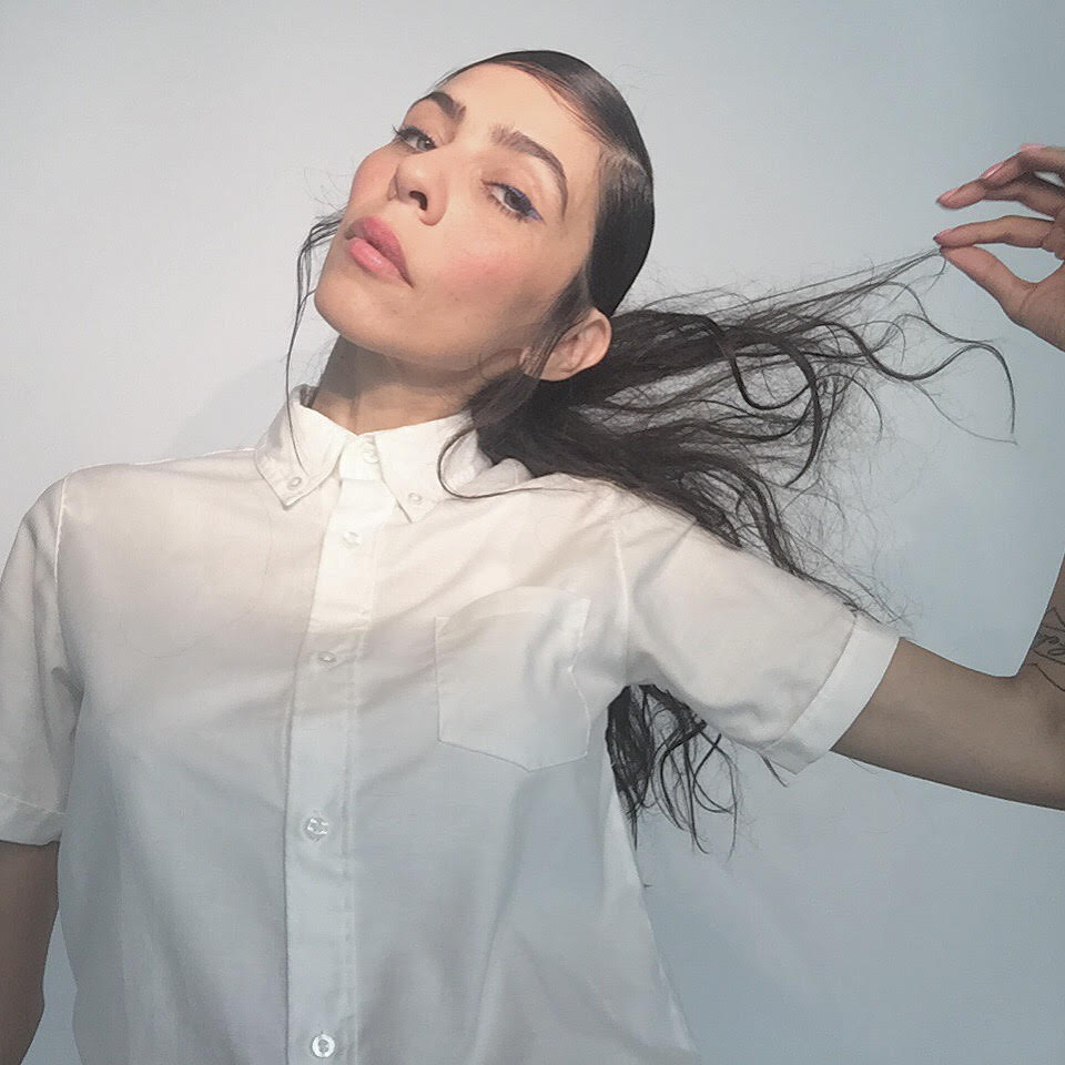 Spritz the crown of your head lightly with water, take a comb and make a part 2 inches further than how you would usually part your hair, almost diagonal to your temple. Make sure the part reaches the back of your head. Then, take a brush and slick down your hair into a low pony that lands just above the nape of your neck. Keep the front part of your hair brushed along your forehead like a men's combover. Once your pony is fastened with a rubber band, fluff it and mist with hairspray. You could also make a knot of a bun and fasten it together with bobby pins. I like to pull out little side wisps with a comb in front of my ears to soften the look. Finish with another mist of hairspray just to be on the safe side.